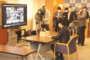 4月22日 大学コンソーシアム岡山 臨時代表者会議(新型コロナウイルスワクチンの3回目接種への協力要請)〔会議終了後の囲み取材〕